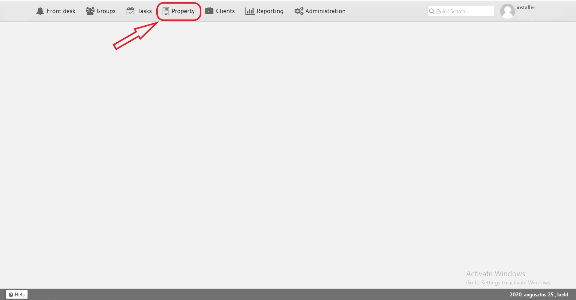 To start operating with the hotel functions, you must click the "P