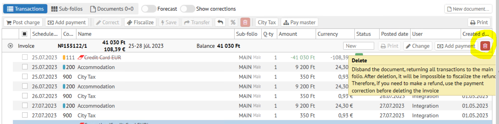 This guide walks you through the process of full refund. The invoice will be Cancelled.